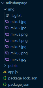 문제 파일은 위와 같은 디렉토리 구조를 가지고 있으며, 여러개의 miku1.jpg 이미지와 함께 flag.txt가 존재한다.