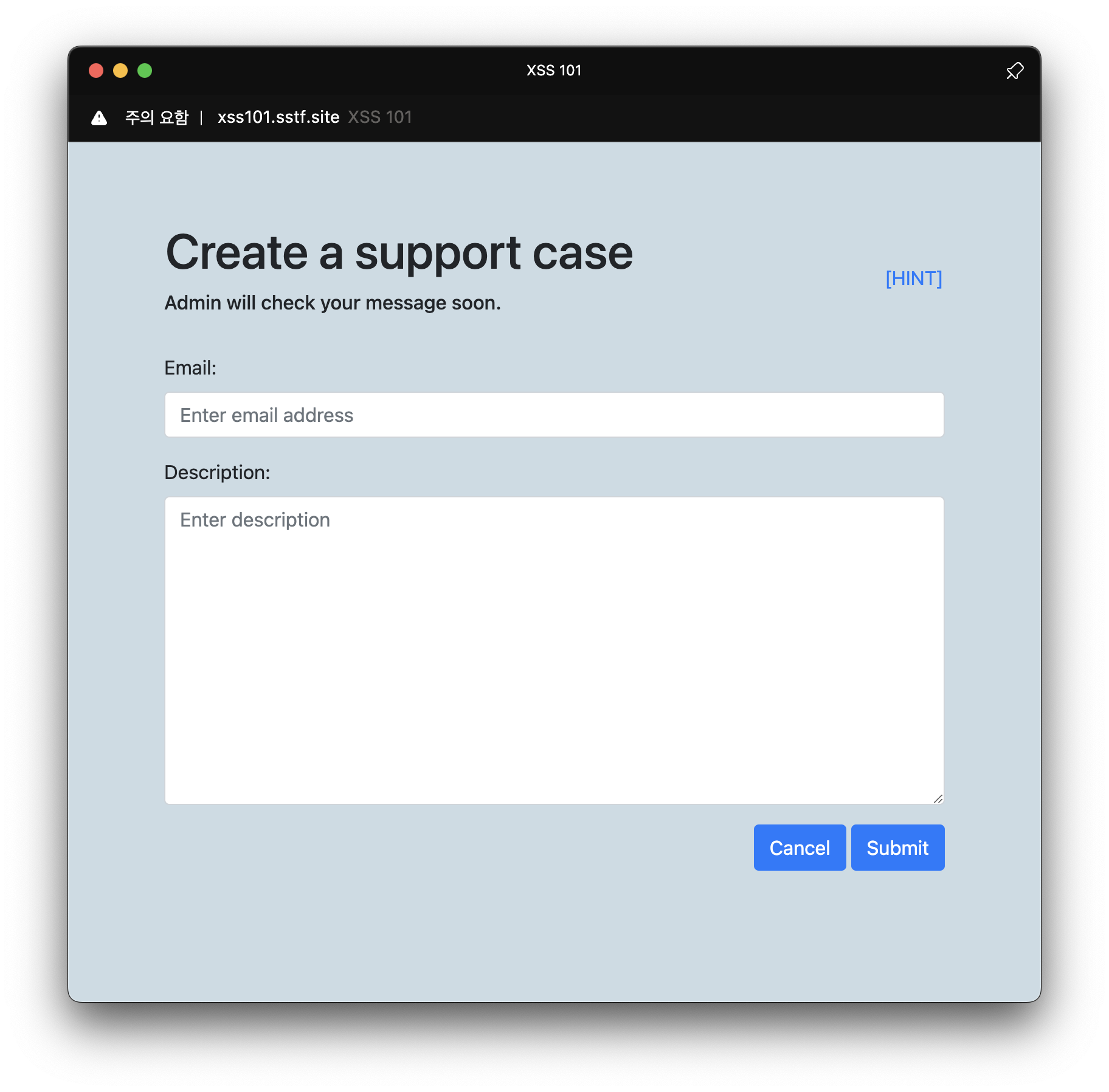 http://xss101.sstf.site/admin.php 로 접속하면 Admin service를 확인할 수 있다.