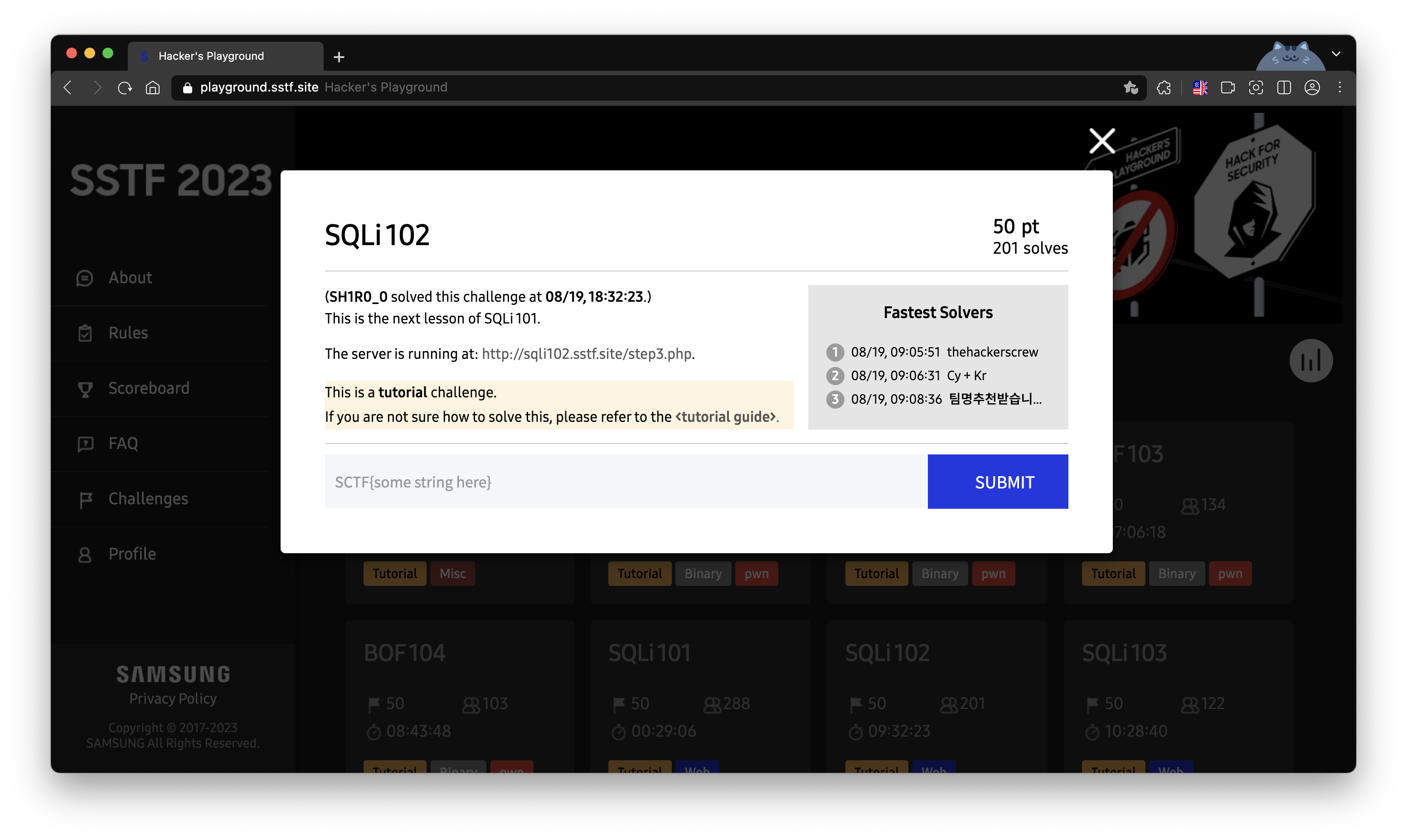| [web] Tutorial - SQLi 103 (0) | 2024.01.10 |